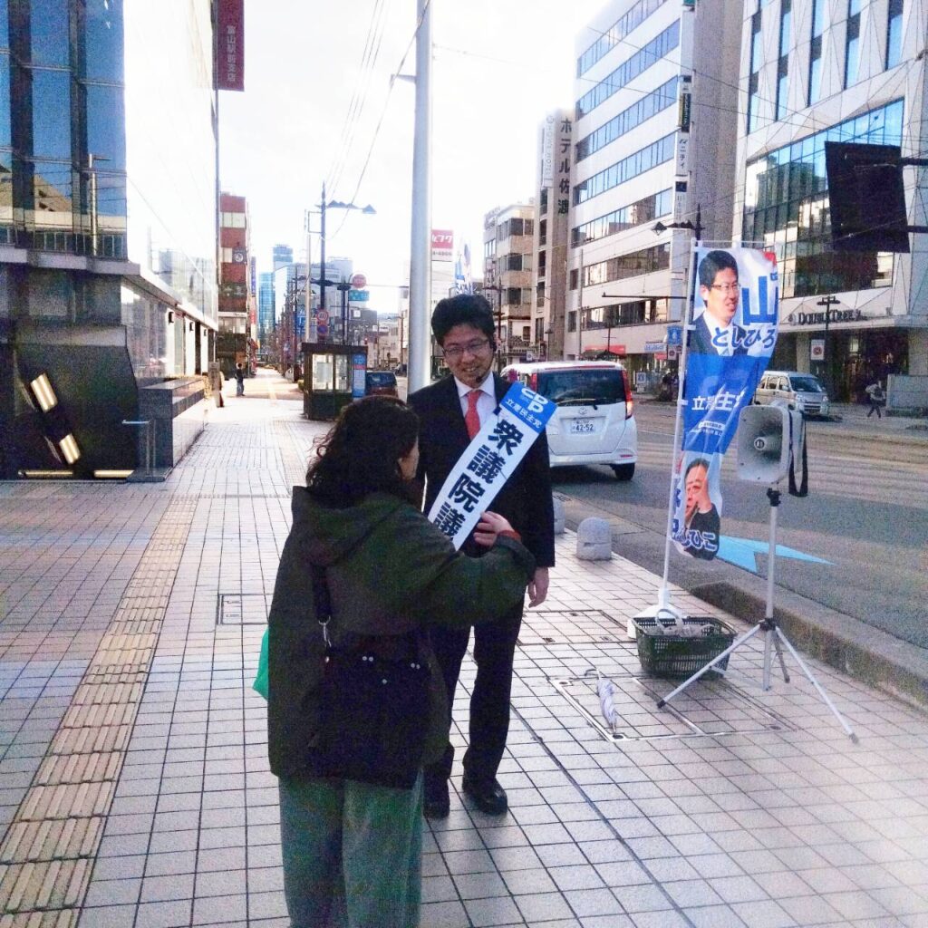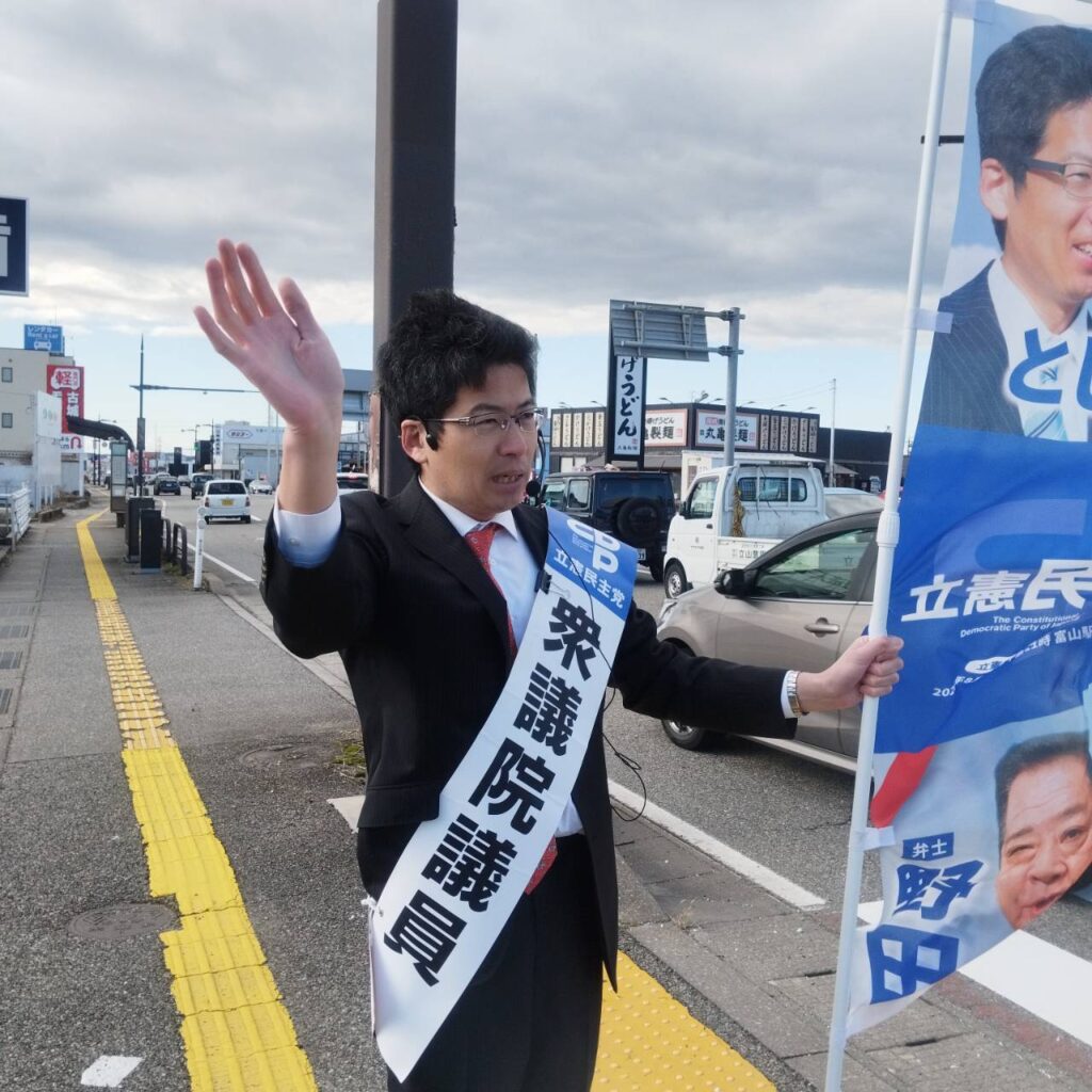 SNSでシェア 2026.1.10 【ご報告】1/10 富山市内で街頭演説 1月10日(土)午後、富山市内で街頭演説を行いました。政治に対する信頼を得るには、多くの市民の皆様とつながることが大事と考えて、各地を廻っています。 皆様の草の根の声こそ、立憲民主党の力の源泉であり、政治を変える原動力と信じています。忌憚のないご意見をお待ちしています。