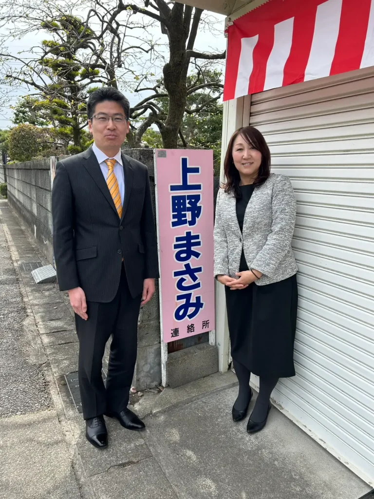 北名古屋市に出向き、北名古屋市議会議員の上野まさみさん(現5期)、伊藤だいすけさん(現2期)を激励しました。